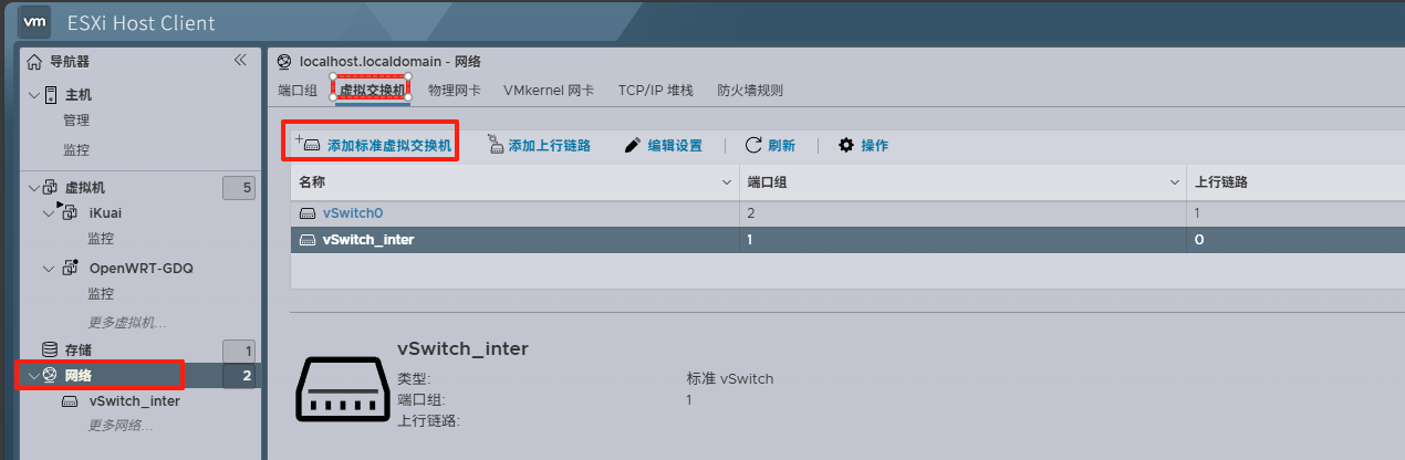 打开 网络-虚拟交换机-添加标准虚拟交换机