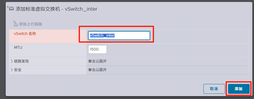 命名,将此交换机用于esxi间各虚拟机的内部互联,随后点击 确定