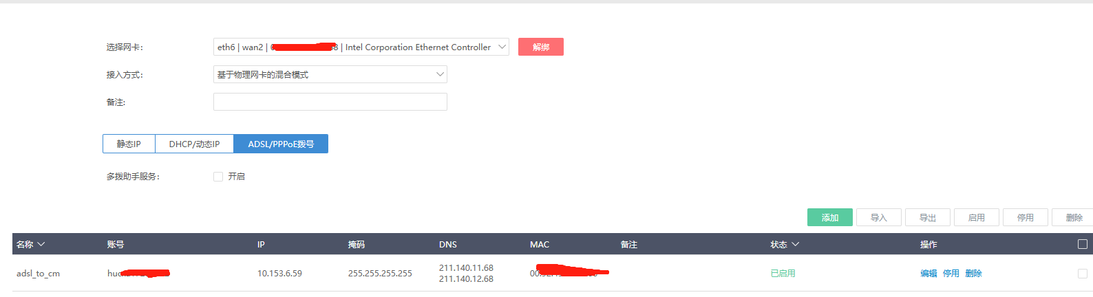 - 中国电信PPPOE,2000M/200M