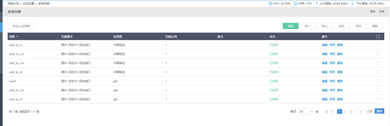 该配置可通过 流控分流-分流设置-多线负载-自定义运营商