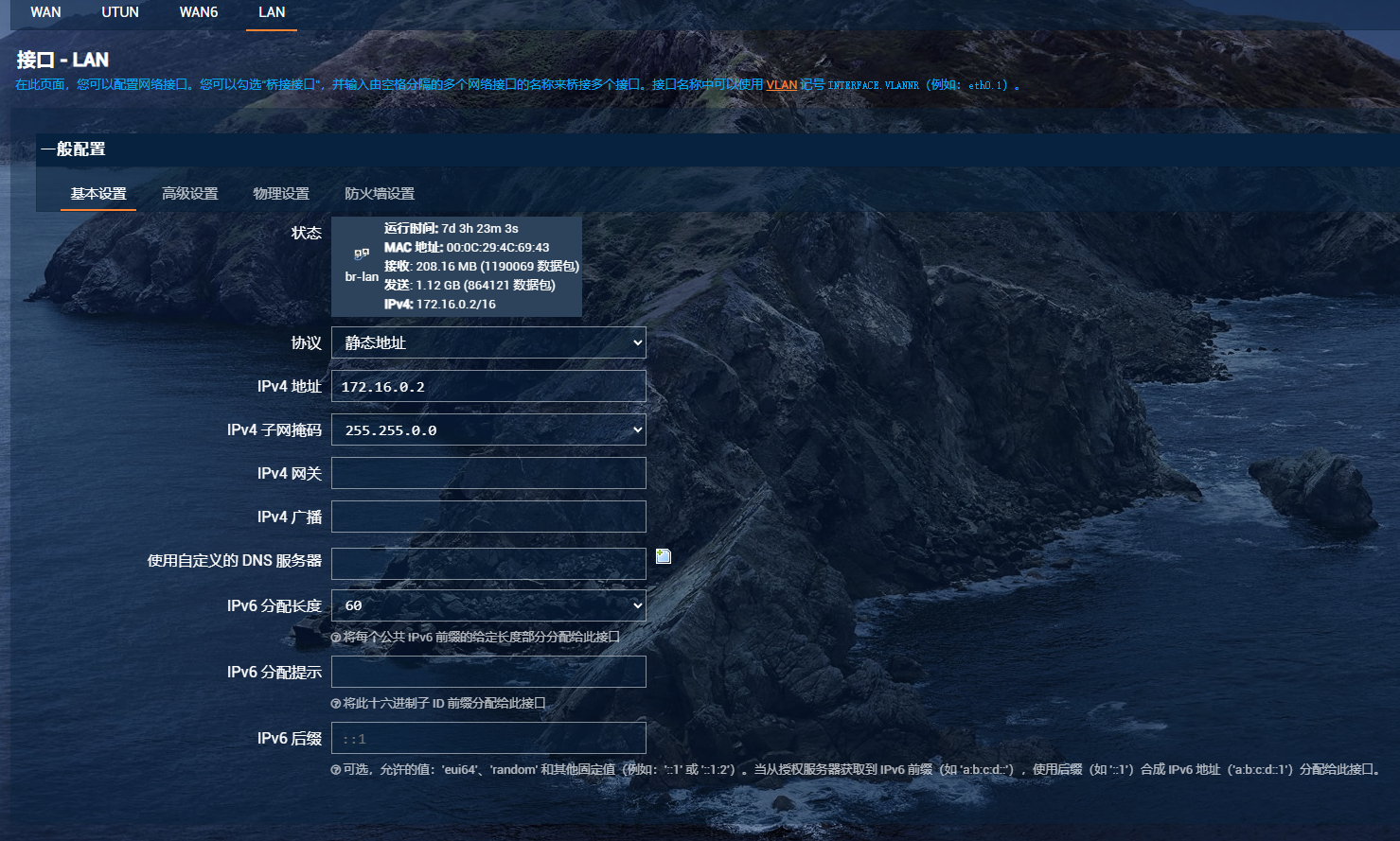 的说明可知,OpenWRT的lan口应当配置为静态IP,用于与OpenWRT内网互联,暂定为172.16.0.2/16