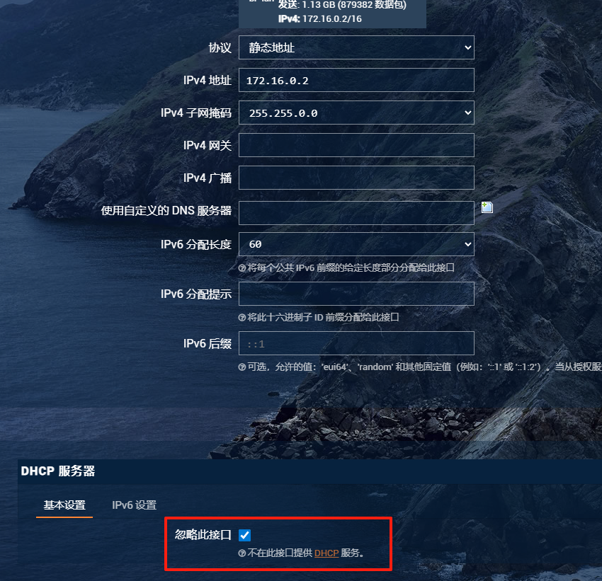 DHCP服务器中,勾选忽略此接口