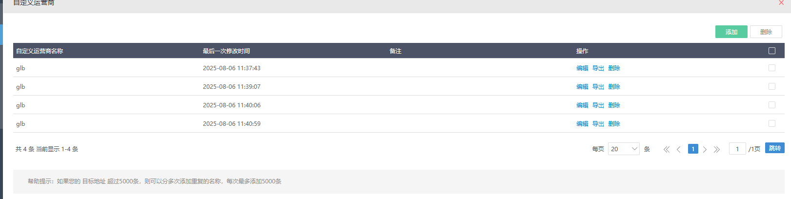 帮助提示: 如果您的 目标地址 超过5000条,则可以分多次添加重复的名称,每次最多添加5000条
