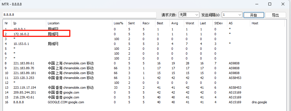 根据博主的策略,非中国大陆地址走OpenWRT出口,而WRT出口又被固定到了移动,故效果如图