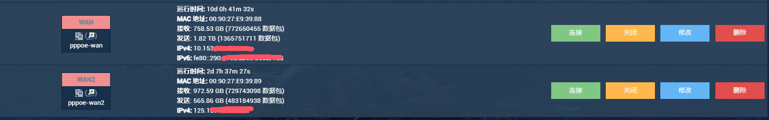 WAN2:电信物理接口,桥接,PPPOE拨号