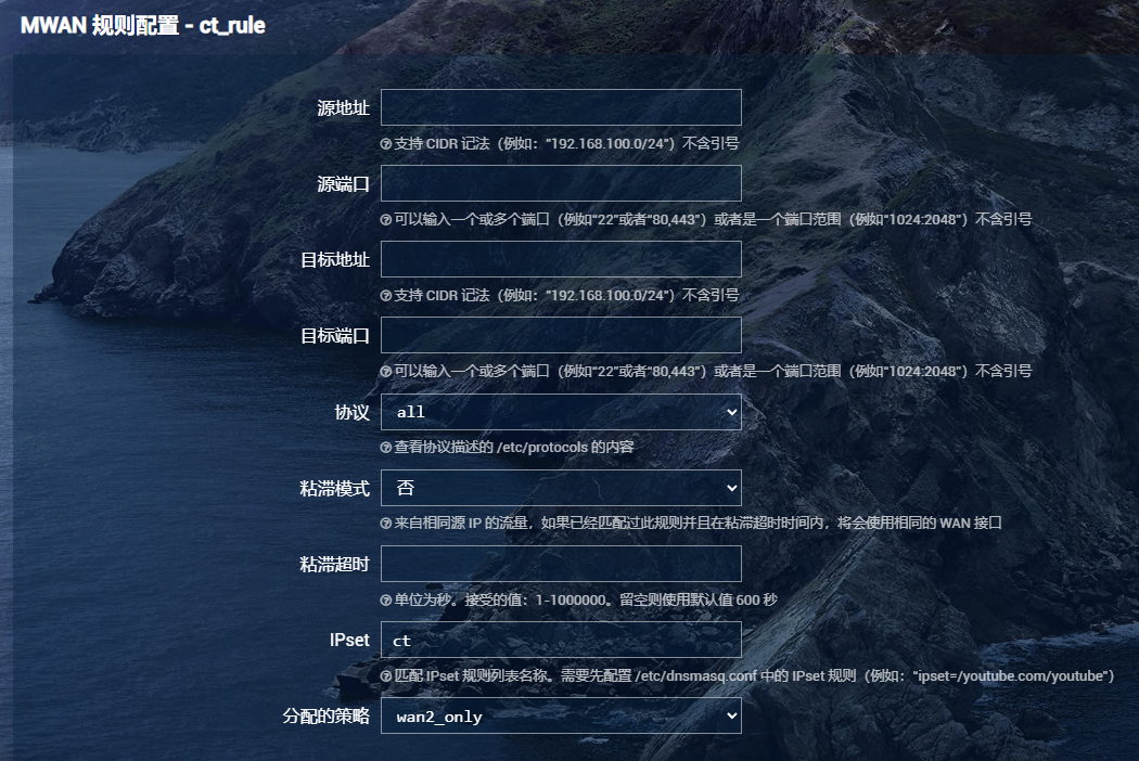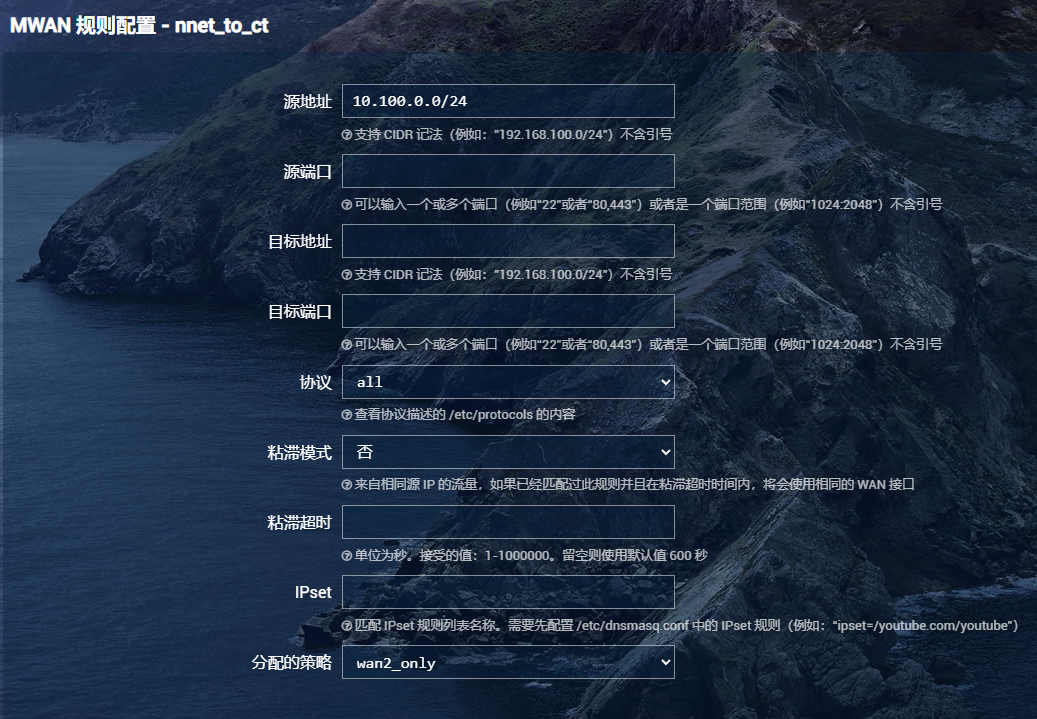 仅走wan2口(只走电信口)