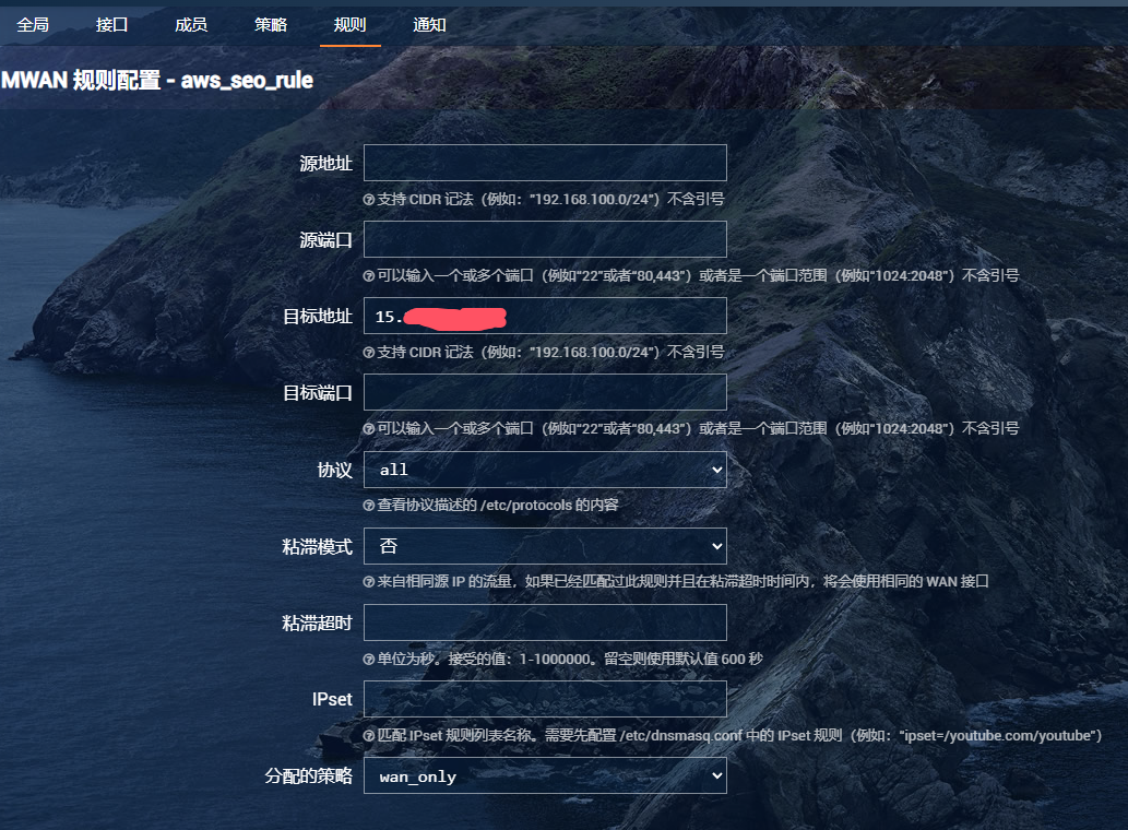 “策略”把成员进行分组,告诉 MWAN 如何分配“规则”中使用这一策略的流量