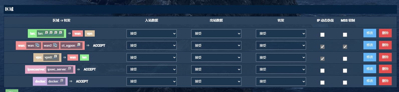 对于想要手动创建vpn0接口的读者,下面贴一张防火墙配置图,供参考