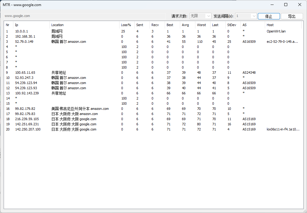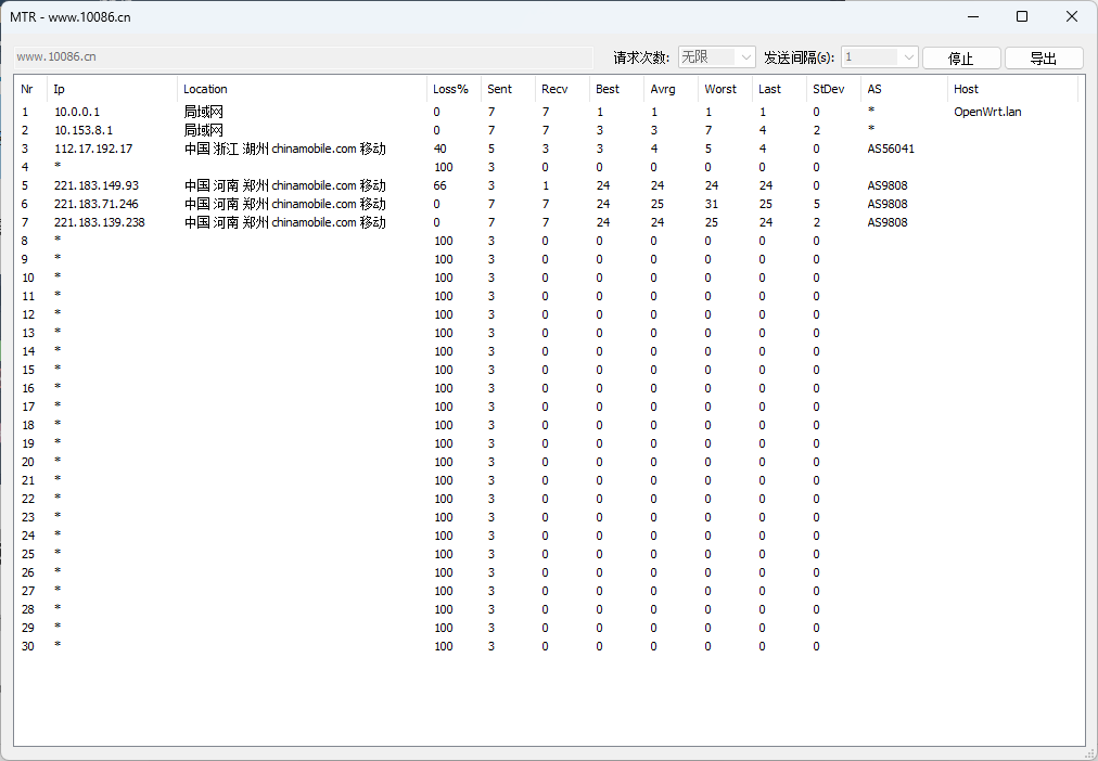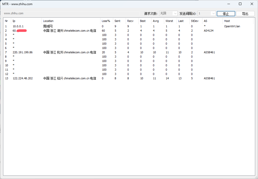电信地址–>电信出口