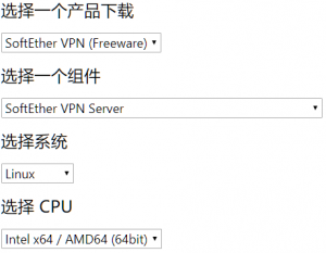 首先,打开http://www.softether-download.com/cn.aspx,按照你的机器配置,选择合适的SoftEther VPN Server,右键选择复制下载地址。