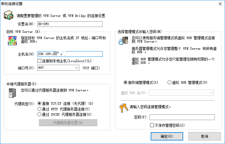 安装完成后打开SE-VPN Server Manager (Tools),点击新连接,输入你的服务器ip后点击确定
