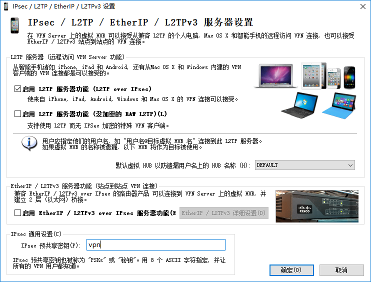 勾选启用L2TP服务功能(L2TP over IPsec),并输入你的IPsec预共享密钥: