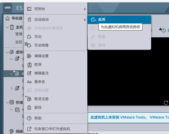 在配置完ESXI自启以后,接着就可以配置虚拟机自启了